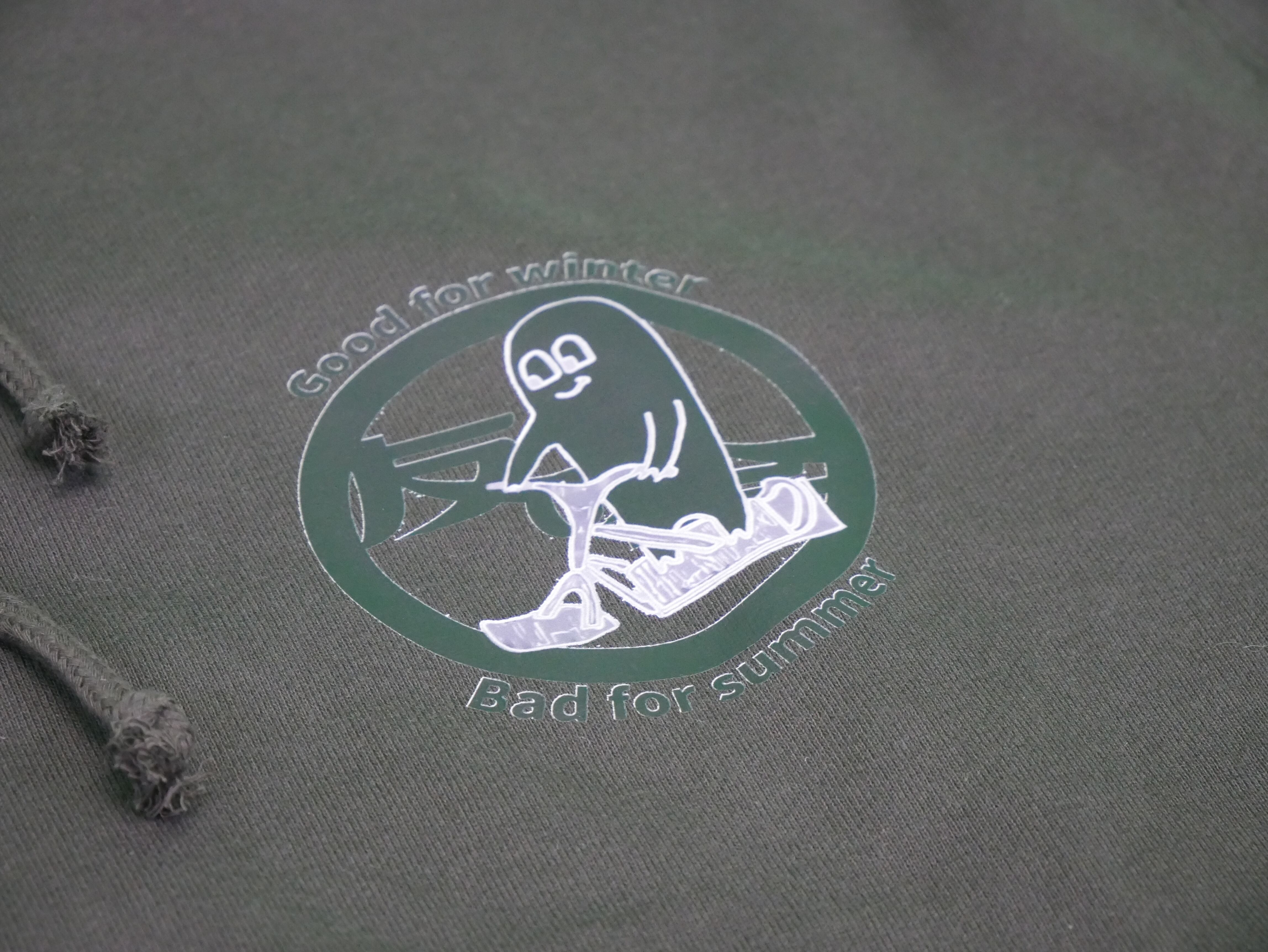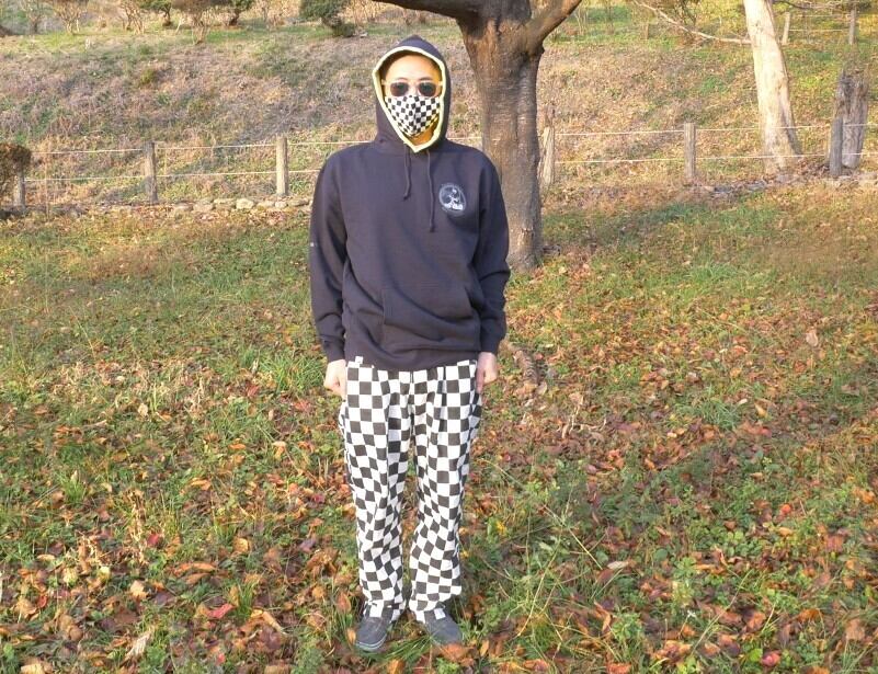 こちらのパーカーは、スミ色(墨汁)を基調とし、